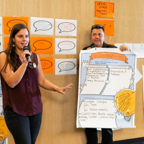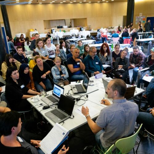 Bei der Tagung wurden von den Organisatorinnen und Organisatoren auch neue Modelle der Diskussion erprobt. So waren die TeilnehmerInnen einerseits eingeladen, ihre eigenen Themen und Fragen per Smartphone in die Diskussion einzubringen und später mit Hilfe von Theatermethoden auch ohne Worte zu bearbeiten, sowie schließlich in einem Open Space gemeinsam Lösungsvorschläge zu erarbeiten.