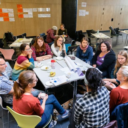 Analysen, Visionen, Entwicklungsstrategien werden in einem gemeinsamen Prozess entwickelt. Referent*innen geben Denk-Anstöße, die im interaktiven miteinander Tun aufgegriffen, verworfen, umgestellt, weiter gesponnen werden.